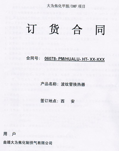 華陸工程科技有限責任公司向我司采購波紋管換熱器用于曲靖大為焦化制供氣有限公司。具體設備包括:T-711塔冷凝器;T-721塔冷凝器;T-731塔冷凝器;T-741塔冷凝器;T-751塔冷凝器;T-811塔冷凝器;T-821塔冷凝器